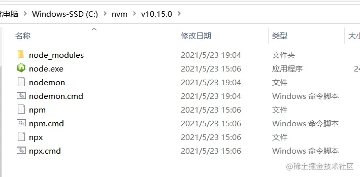 若在安装路径中出现相应版本文件夹,以及相应文件夹下有npm对应的配置文件即安装成功。