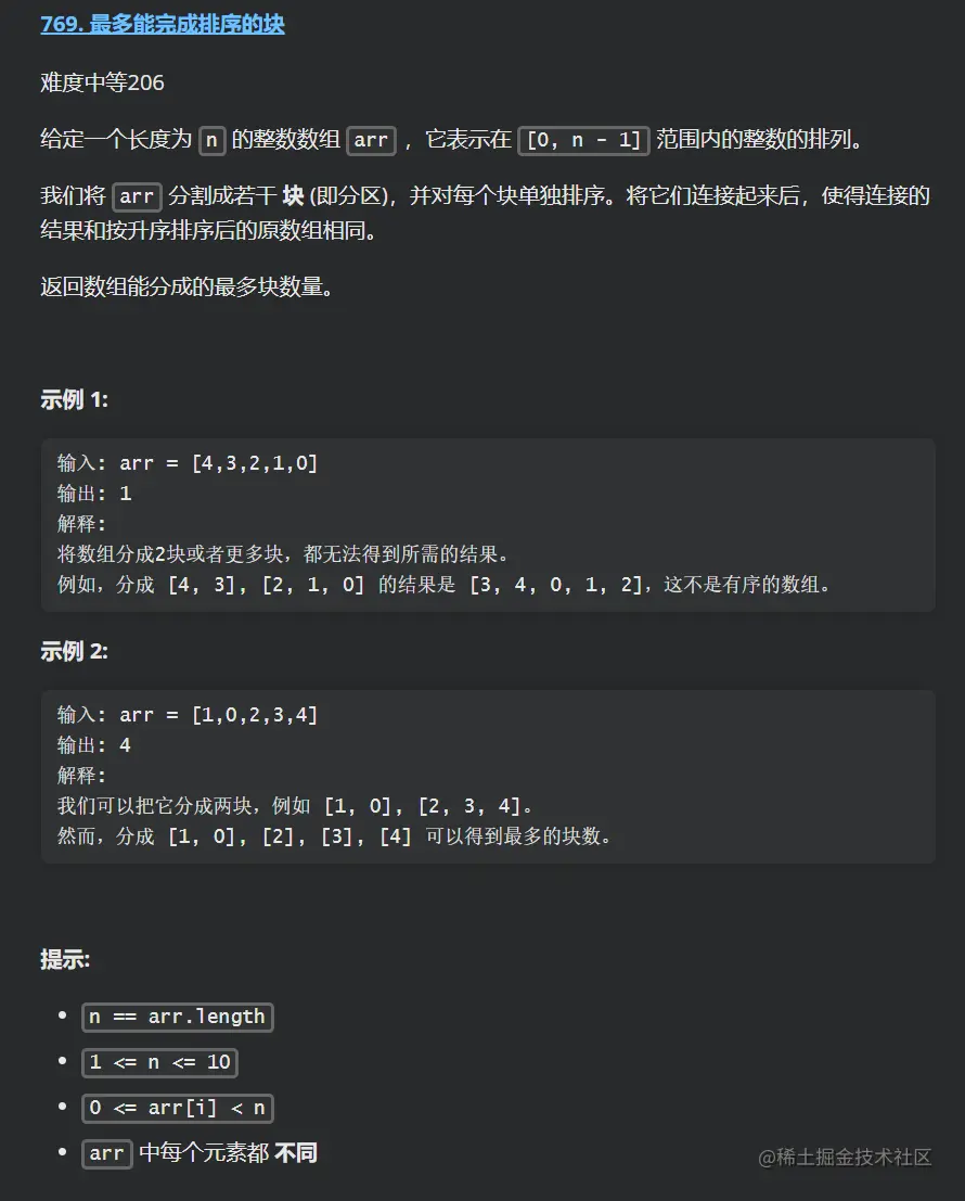 本次刷题日记的第 91 篇,力扣题为:769. 最多能完成排序的块