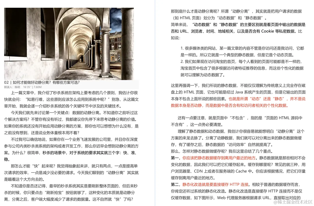 今天我们就先来讨论第一个关键点:数据的动静分离。不知道你之前听过这个解决方案吗?不管你有没有听过,我都建议你先停下来思考动静分离的价值。如果你的系统还没有开始应用动静分离的方案,那你也可以想想为什么没有,是之前没有想到,还是说业务体量根本用不着?