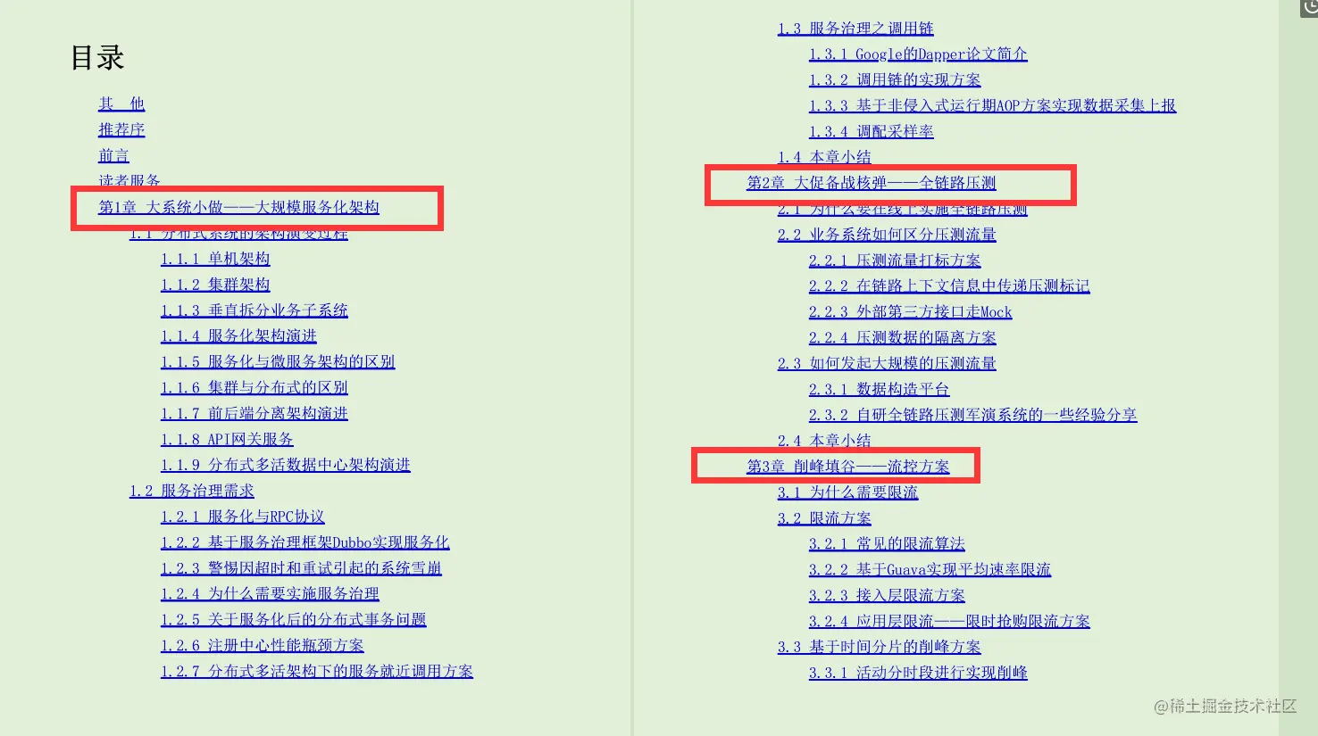 第3章重点介绍了如何有效地对流量实施管制,若采用合理且有效的方式管制住峰值流量,使其井然有序地对系统进行访问,则在任何情况下,系统就都能稳定运行。