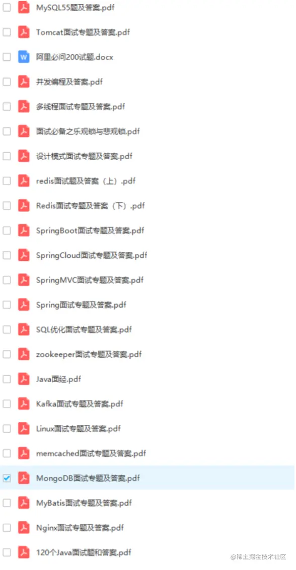 这几十套面试题小编已经为大家整理好了,由于面试文档很多,内容更多,没有办法一一为大家展示出来,所以只好为大家节选出来了一部分供大家参考