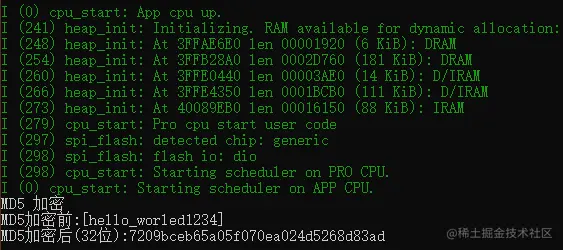 • 参考:乐鑫Esp32学习之旅 22 讨论下程序员 “青春饭” 那些事,分享在esp32实现多种加密算法md5 |AES CBC-ECB| Sha1 | Sha256 等,附带Demo