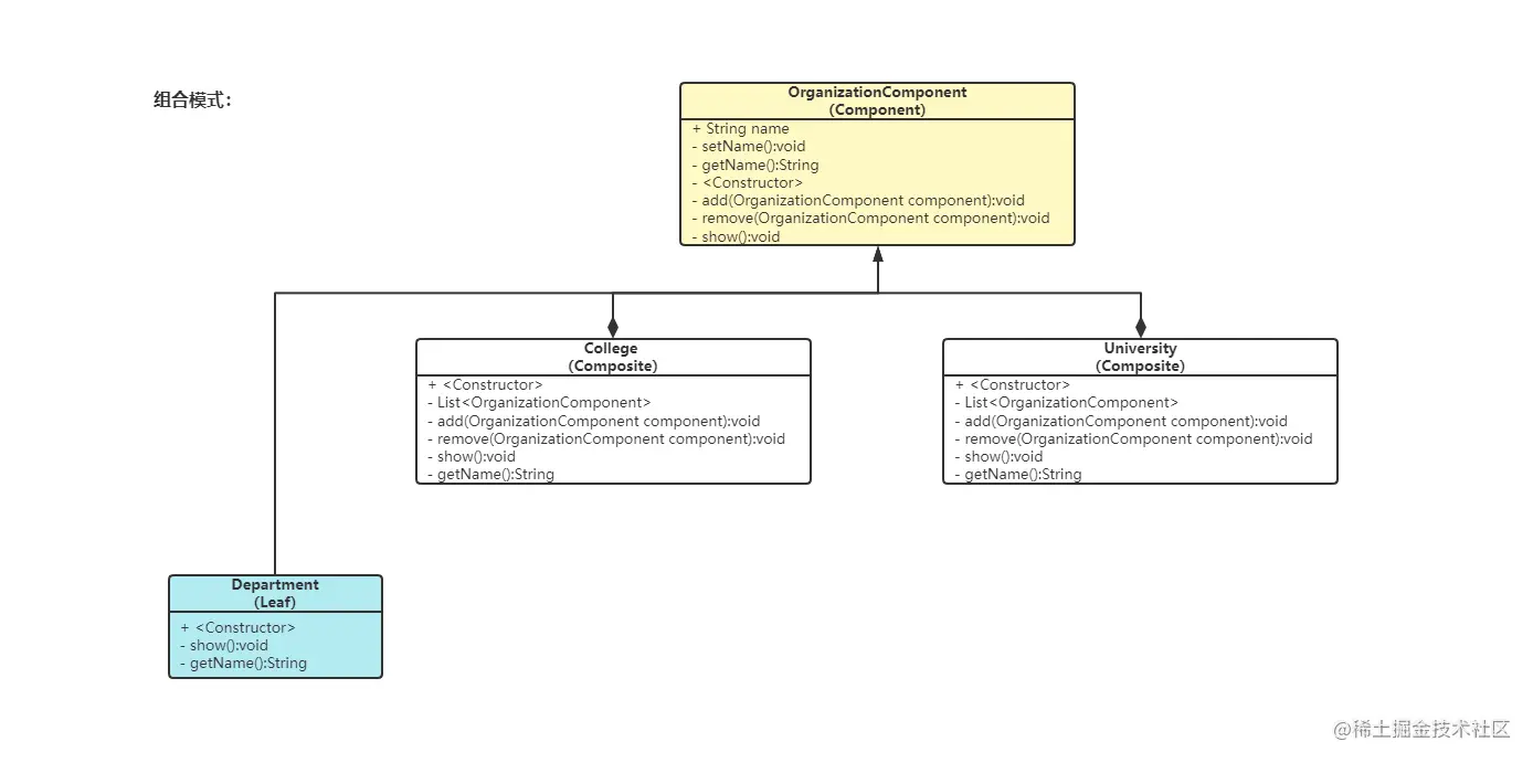 * Department为叶子节点,故没有成员集合及add(),remove()方法。