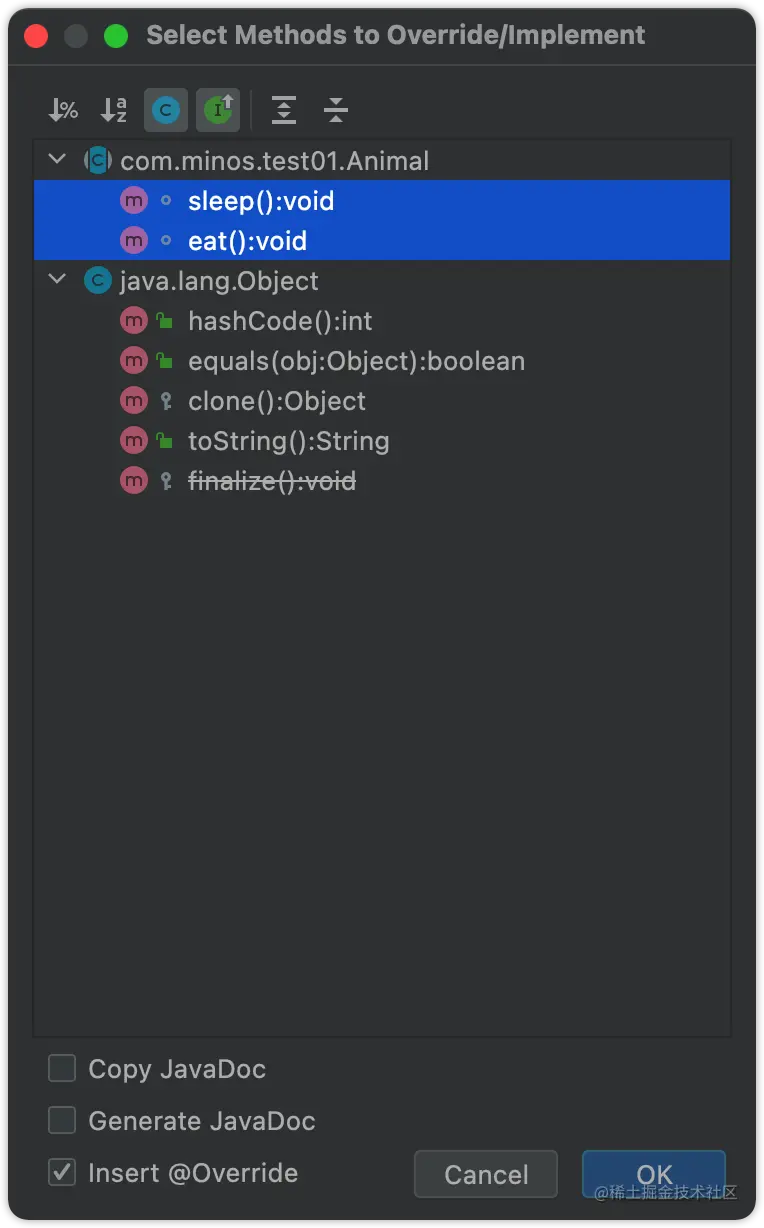 现在的IDE很好用,比如idea,直接使用control + O就可以调出覆写面板
