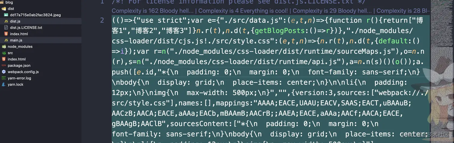运行后npx webpack后,结果如下,可以看到文件中代码如下: