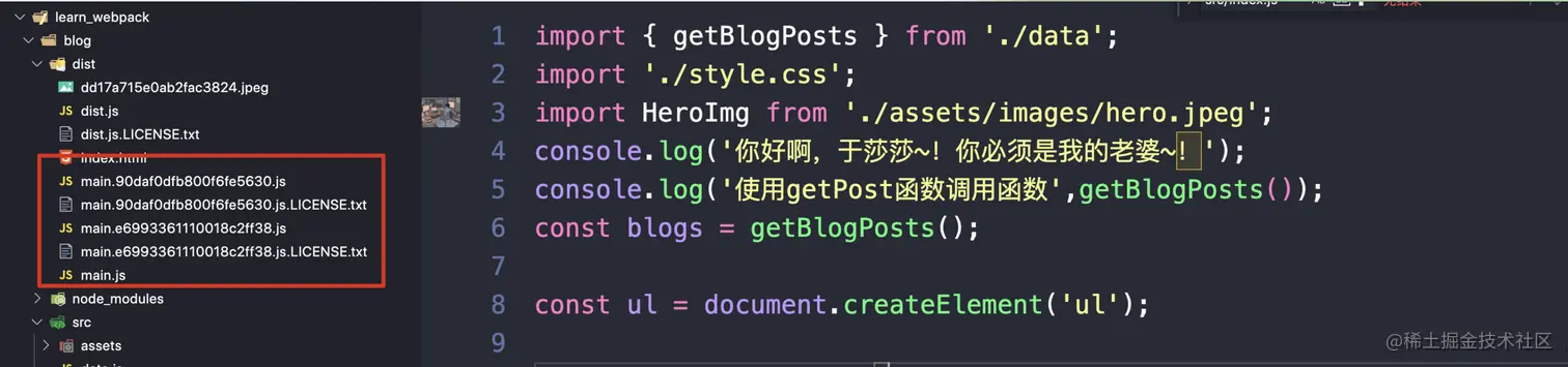 name:可以写死的,如果写成[name],那么webpack打包后会自动替换成maincontenthash:contenthash会在每次打包后,根据文件的内容,进行hash计算,得出一串不重复的字符