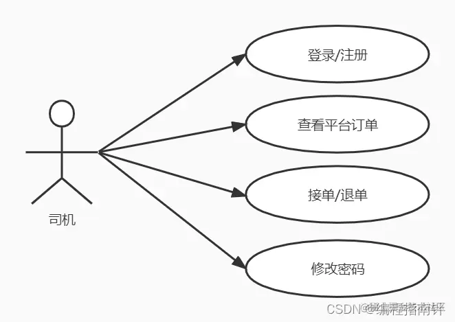 如图4-1所示,司机可以进行查看平台订单、接单/退单、修改密码等基本操作。但这些功能的使用基础是司机注册后已登录的前提下。