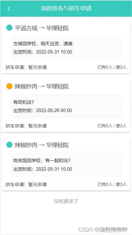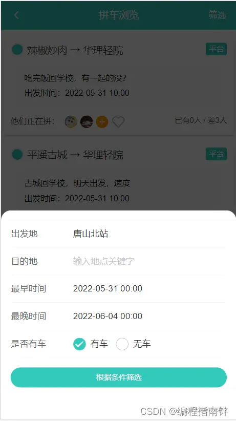 ⑸ 用户可以根据拼车时的关键信息进行检索,快速定位到符合自己要求的拼车信息。