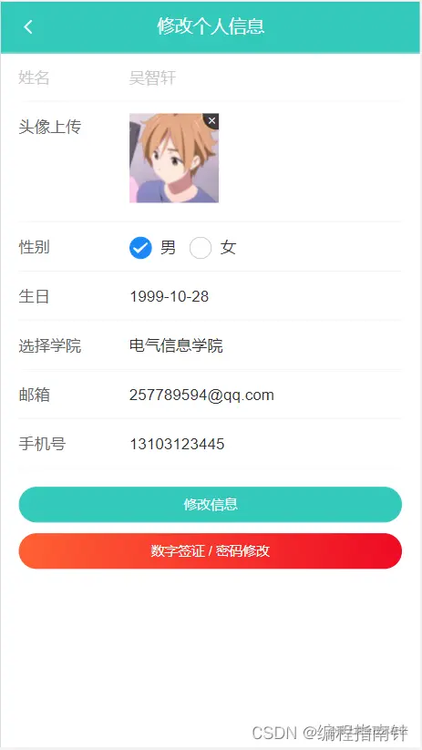 ⑶ 用户可以修改自己的性别、生日、邮箱等基本信息,同时提供旧密码与新密码可完成密码修改操作。当用户完成所有信息填写时,即可生成自己的唯一电子签证。