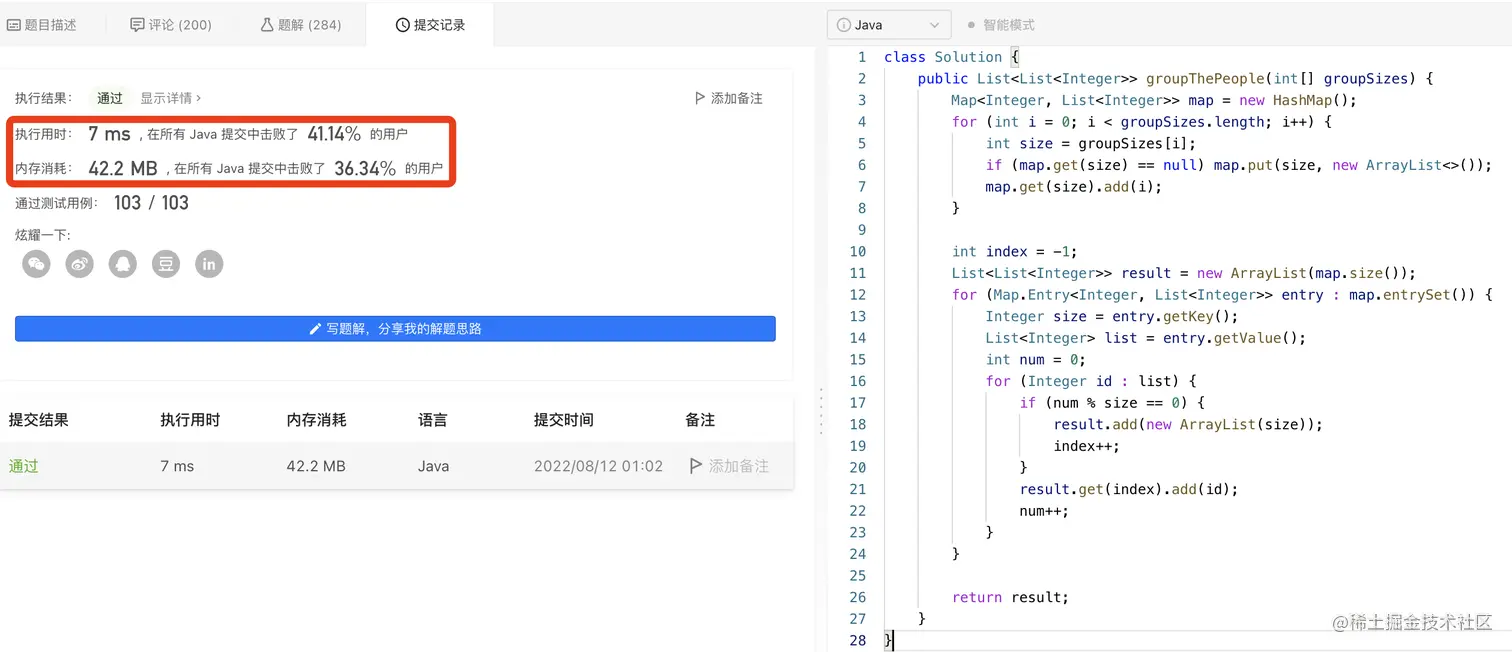 确定了解题思路,代码实现就比较简单了。具体代码实现,请参见4.2> 实现1:哈希表 + 取余分组