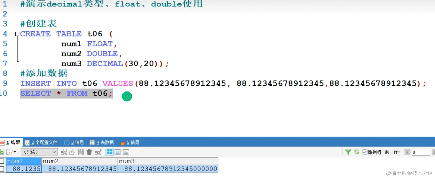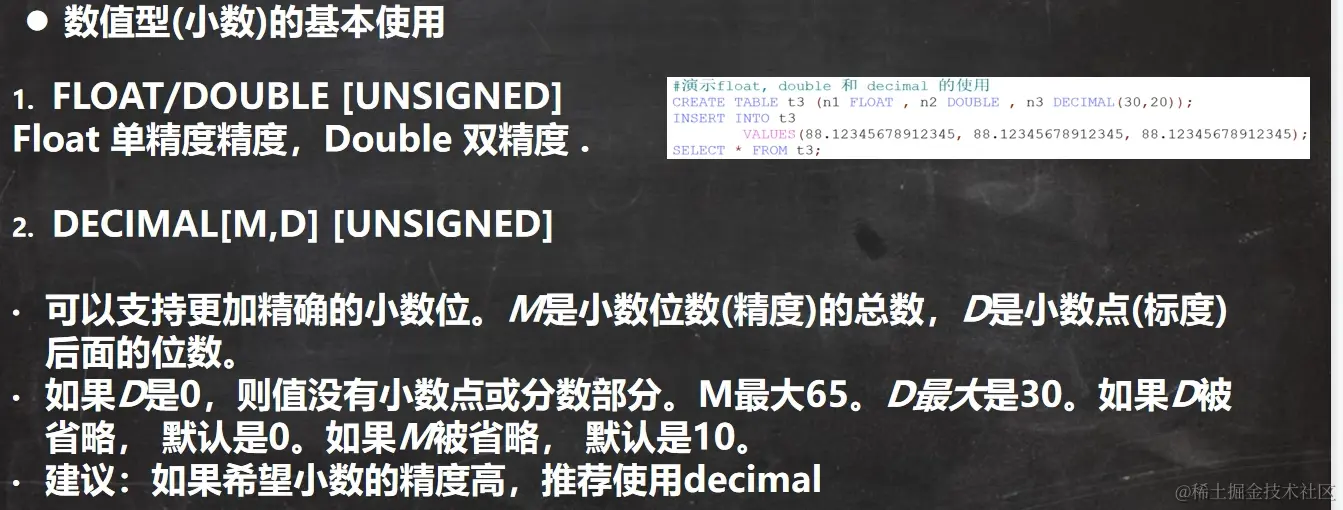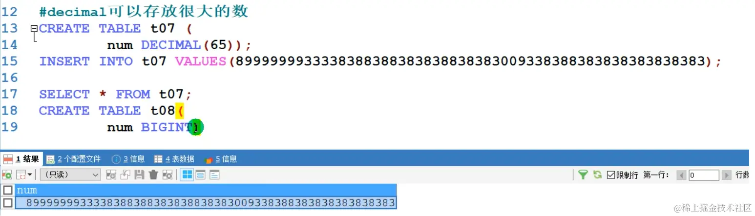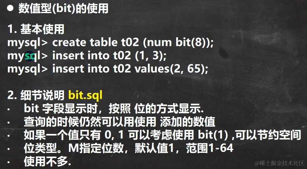MySQL常用数据类型(列类型)详解 ZWF 2022-08-13 71 阅读1分钟 1.数值型(整数)的基本使用 通常来讲,我们在选择这些数据类型这方面希望在能够满足需求的情况下,尽量选择占用空间小的类型 2.数值型(bit)的使用 3.数值型(小数)的基本使用 4.字符串的基本使用 值得注意的是varchar在使用时必须设置字符串长度 5.日期类型的基本使用