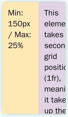 grid-template-columns: minmax(150px, 25%) 1fr;