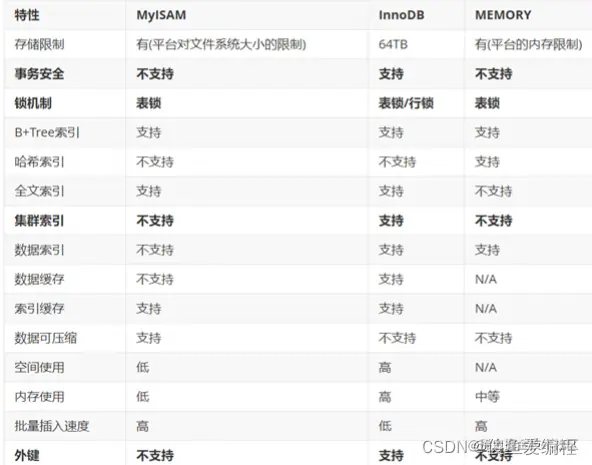 MySQL 当中常用的存储引擎: