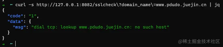 curl http://127.0.0.1:8082/sslcheck?domain_name=www.pdudo.juejin.cn
