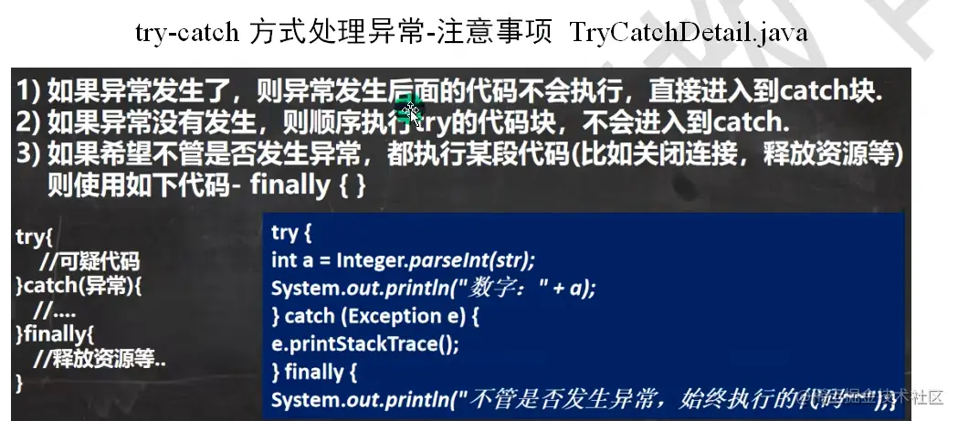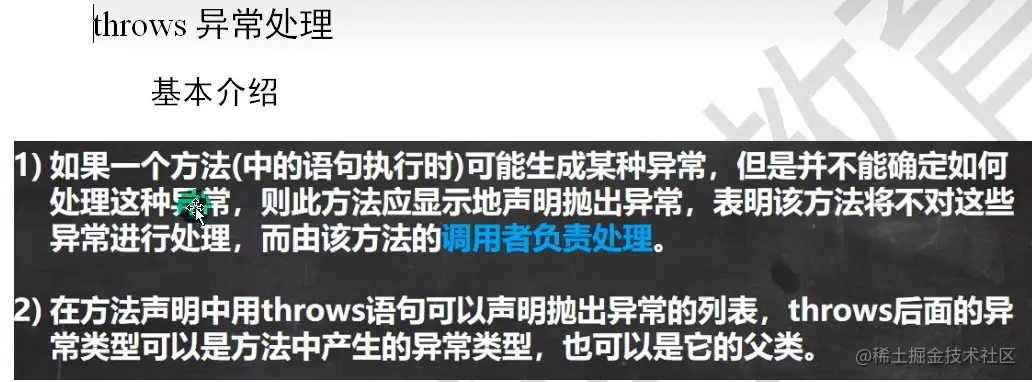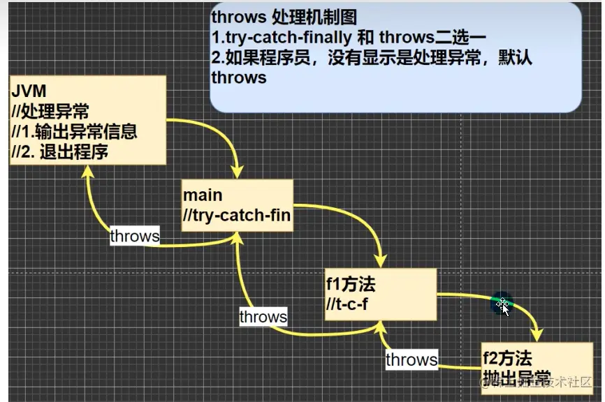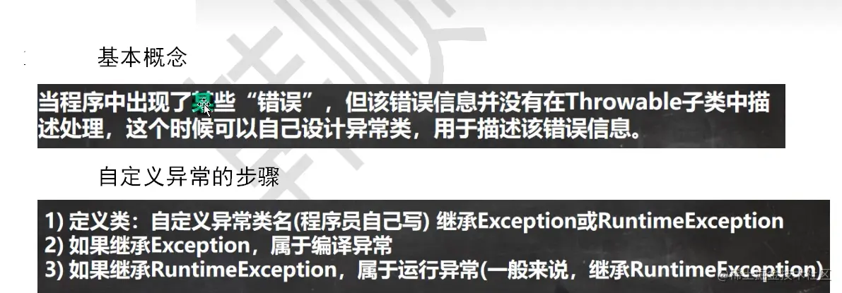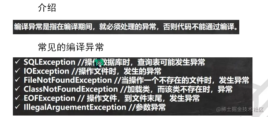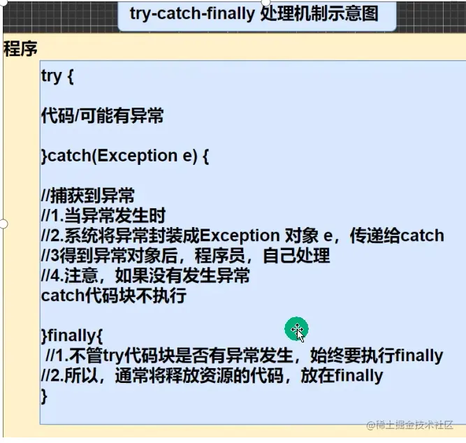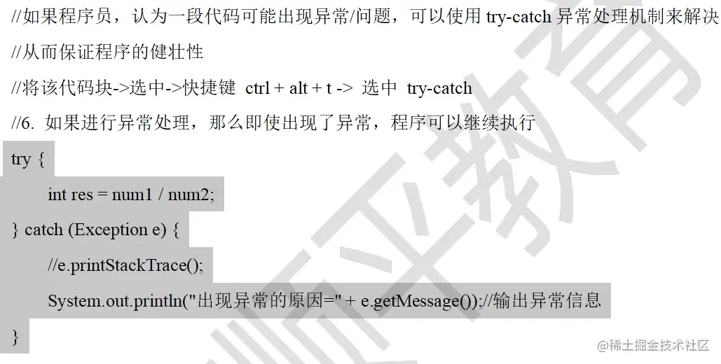 Java知识梳理 第十一章 异常Exception ZWF 2022-08-14 71 阅读1分钟 第十一章 异常Exception 引入 当我们在写程序时,或多或少都会出现一下问题,有时候是我们程序的问题,有时候是环境的问题,为此Java为我们提供了异常处理机制来帮助我们提高代码的健壮性 try-catch异常捕获 面对以上代码,程序会抛出一个算术异常,这样会导致我们出现异常的下面的代码无法执行,此时我们可以使用try-catch 运行异常 编译异常 异常处理 1)try-catch-finally 2)throws 自定义异常