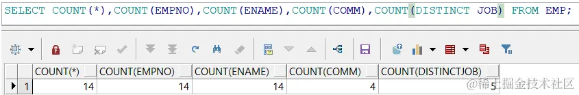 COUNT(DISTINCT 字段):如果列上存在重复,则重复值不统计。