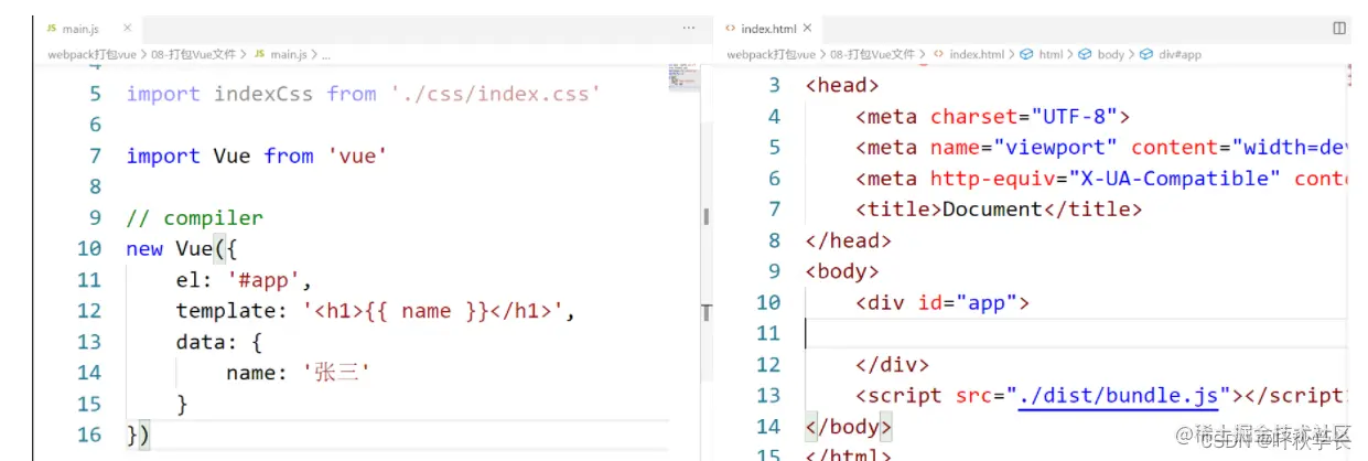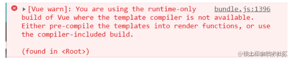 打包,打开html,没有效果控制台报错,需要指定使用Vue的版本。这边Vue的写法是compiler(模板写法),默认使用的是runtime(运行时)模式,需要修改默认模式