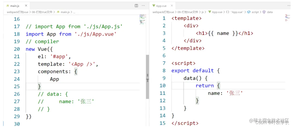 我们如果要修改页面内容,必须修改html文件,使用组件也是直接写在html里面,现在准备把内容分离出来