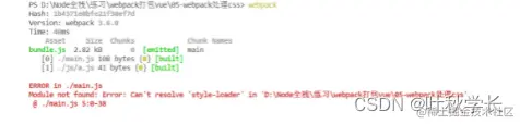 在main.js中引入css文件,进行打包,这时候会报错,css-loader需要style-loader支持