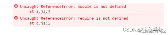 报错,js没有module和require这两个关键字,这是commonJS设计的关键字,无法被js识别