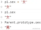 现在修改 p1 的 sex 属性会发现实例 p1 的 sex 属性被修改,但是构造函数 Parent 上的 sex 没有变化的。
