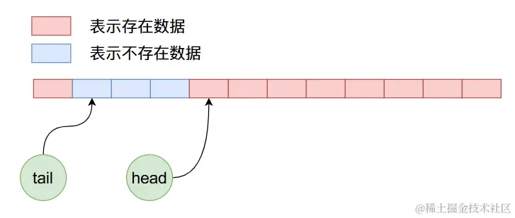 // 因为队列当中的数据可以出队 因此下标为 0 的位置不存在数据可以使用