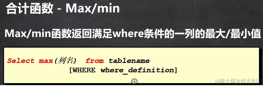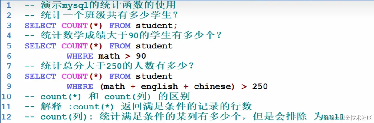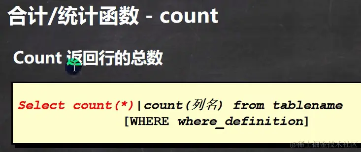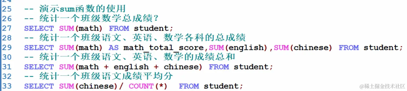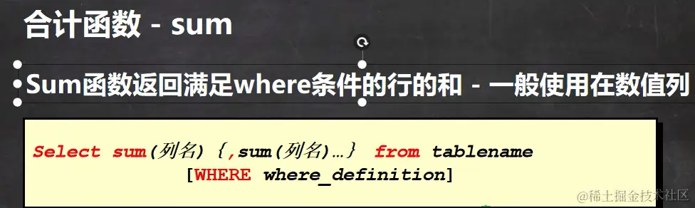 MySQL 统计函数 ZWF 2022-08-14 90 阅读1分钟 1. count函数 2. sum函数 注意sum函数只对数值起作用,对非数值字段使用该函数没有意义 对多列求和时,注意不要漏掉 逗号, 3. avg函数 4. max/min函数