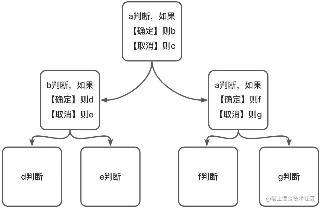 循环时候就需要判断是不是需要根据本次判断的【确定】【取消】去确定下一个调用的判断函数,需要的话就循环找到,大概就是这么个思路,我就不写了,都大同小异!!