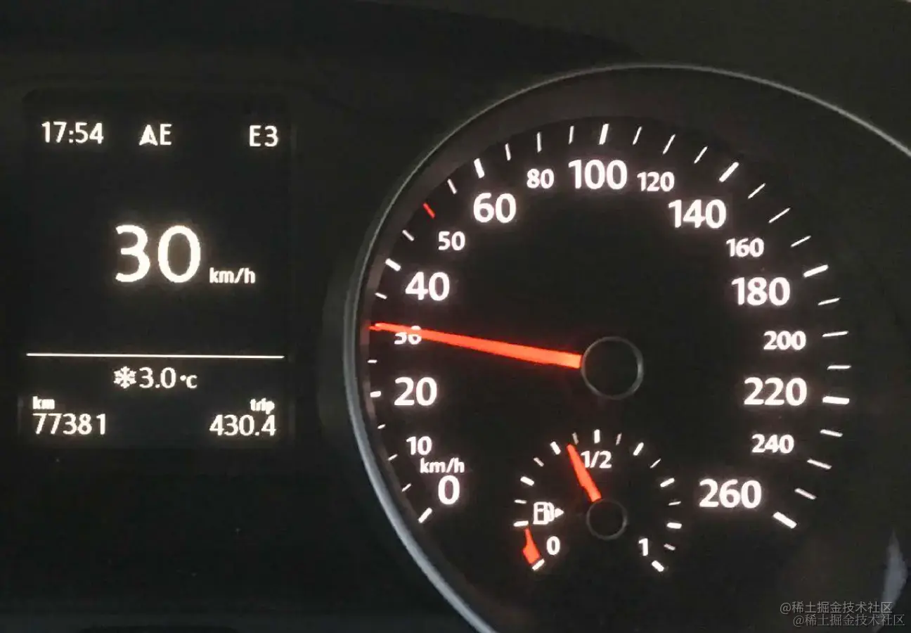 上面这个图刚开始每一个大刻度表示20,后面的慢慢变换40,这种表示会影响开车人对车速的把控,从而造成不正确的判断。