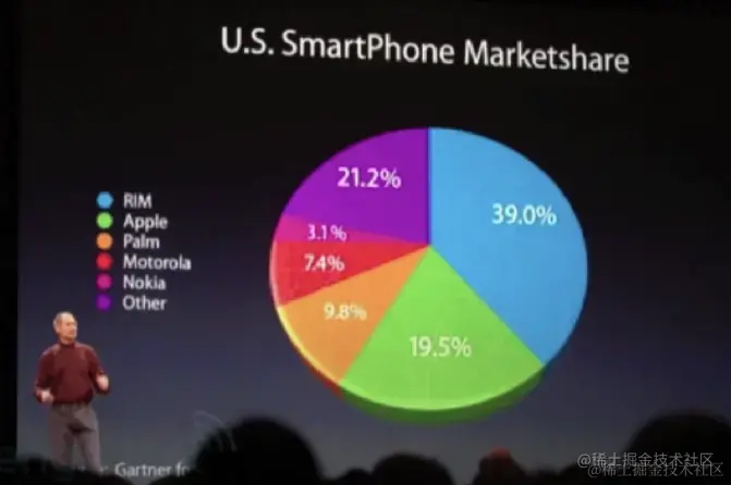 例如上图显示苹果发布上的手机市场占比饼状图中,给人感受是apple手机的市场份额占比是多余其他手机的,但是实际数据却相反。这是因为这个饼状图是个3D效果显示,从而会有一种近大远小的效果,造成了透视失真。如果是个2D的饼状图,就不出现这种模糊的情况。由此可见即使是苹果公司为了营销也会不择手段。