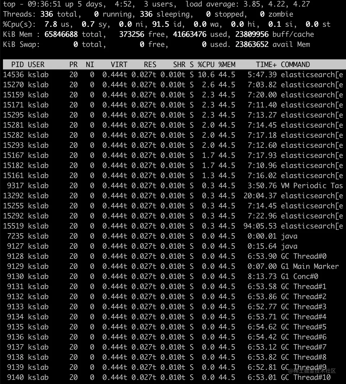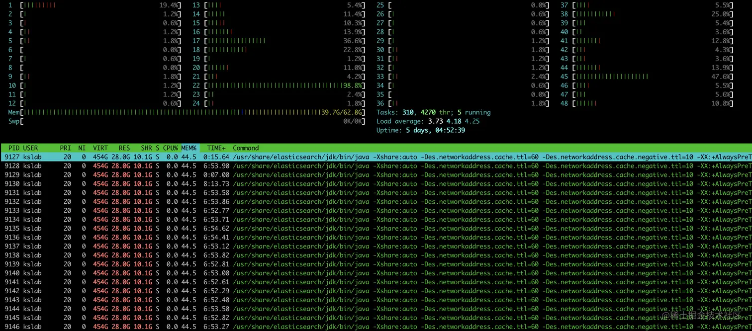 top -c可查看服务器整体运行情况,包括启动了多久,登录的用户数,cpu总体负载情况,任务运行情况、cpu使用情况统计、内存占用情况、各个进程的资源占用情况