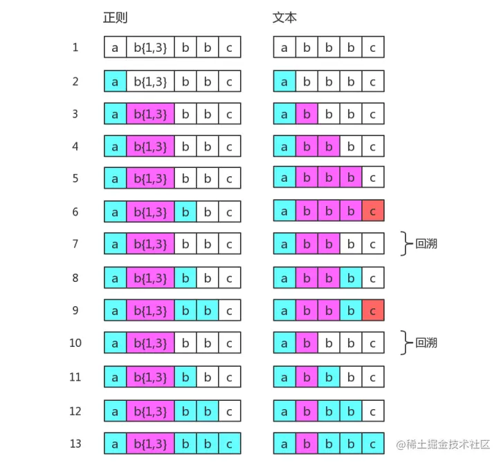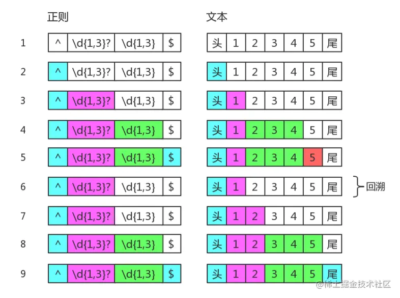 // 可以看出,匹配会出现效率问题,主要出现在 3 4 阶段。因此优化手法也是针对这两个阶段的。