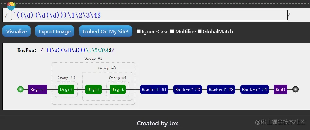 // 行,再移动一位是数字 "3",此时匹配到了两位数字 "34"。此时,下一次匹配的位置是 "d" 的位置,即第8 位。