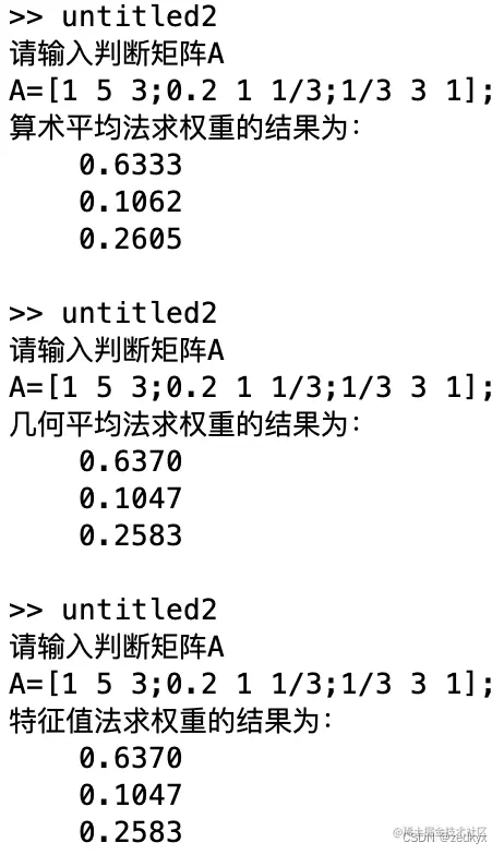 Stand_A = A ./ SUM_A; %得到权重向量