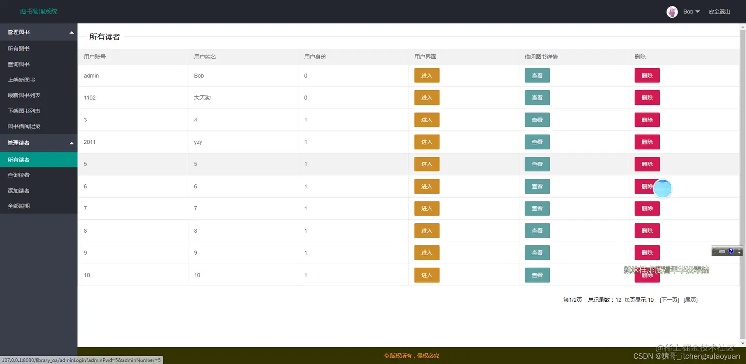 所有图书:可以查询所有的图书信息 进行查看 借阅、编辑、下架