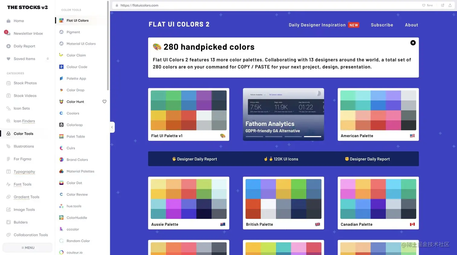 - TheStocks v3 - 这是一个设计导航网站,收集了 2000 多个与设计师有关的产品,和一般的导航网站不同的是这个网站可以直接在页面里点击浏览选中的网站。还是很方便的。