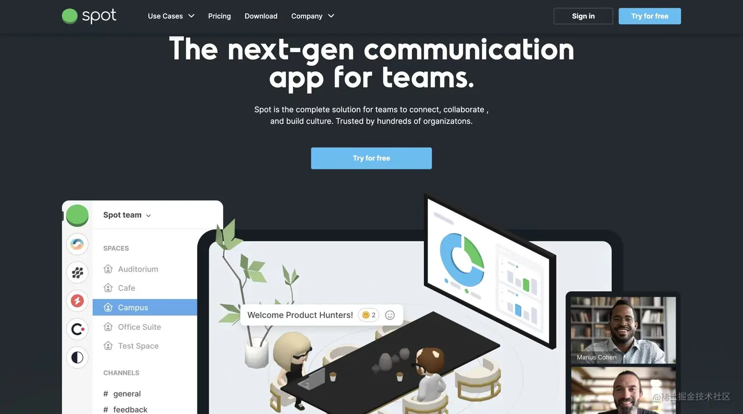 - Spot 2.0 - 这是一个针对办公的团队沟通软件,可以虚拟办公室的3D场景,疫情时代远程办公的产物,之前发过一些这类产品,这个产品去年发布了1.0的版本,今年推出了更多的功能,基本可以还原出一个3D的办公室场景。倒是挺有意思的。
