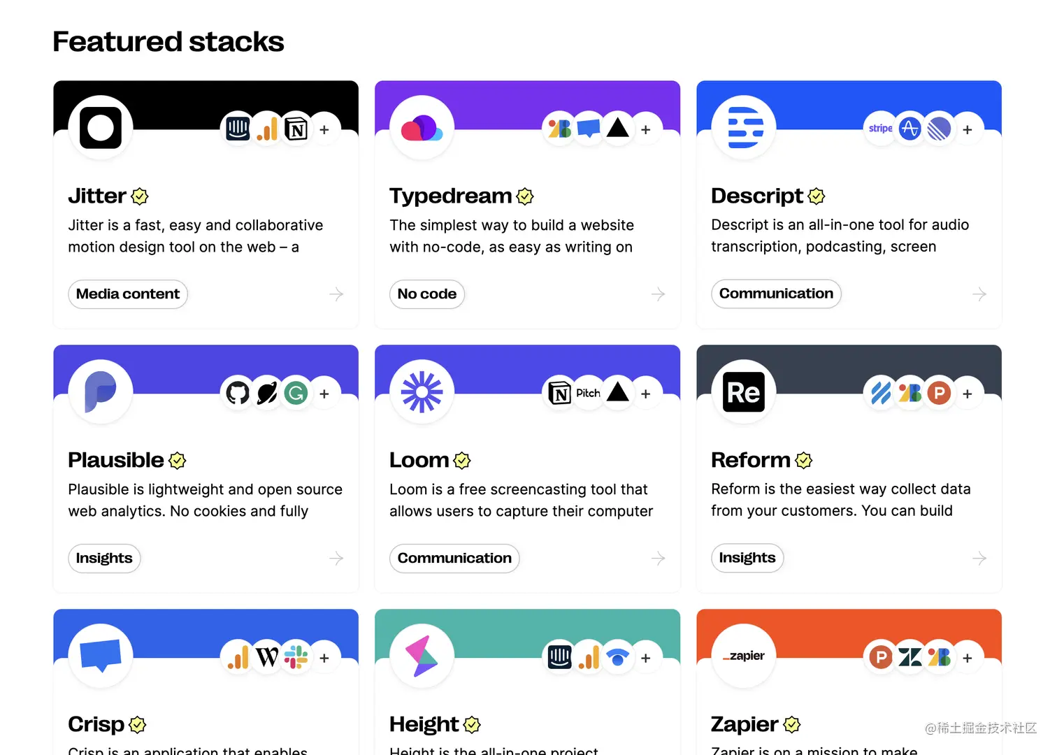 - companies.tools - 这个网站可以查看一些优秀的产品团队使用了哪些工具产品。