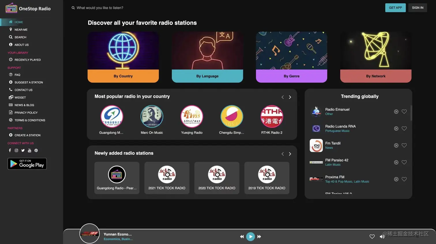 - OneStop Radio - 这是一个有 65000 多个免费收音机电台的网站也,可以下载安卓端的 APP FM Radio。不知道为啥我网页端全都听不了,APP 还没有试,不知道可不可以。