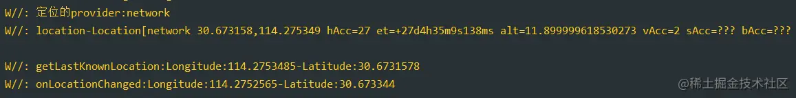 这样我们启动这个服务就可以获取到当前的经纬度,只是获取一次,大家如果想再后台持续定位,那么实现的方式就不同了,我们服务要设置为前台服务,并且需要额外申请后台定位权限。