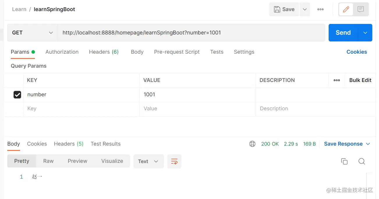 配置Get,地址为: http://localhost:8888/homepage/learnSpringBoot