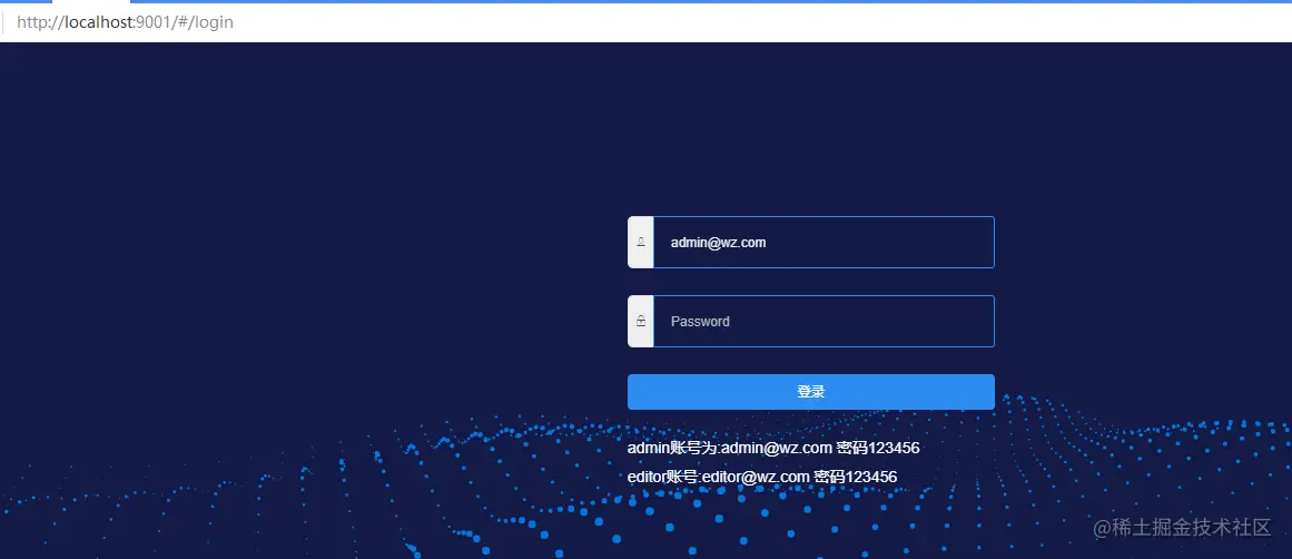 初始化成功后,运行npm run dev,启动nodejs的服务器,运行网站,结果如下图: