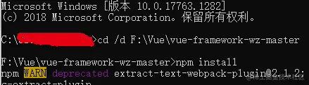 运行CMD,输入【cd /d F:\Vue\vue-framework-wz-master】