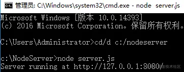 然后打开cmd,cd到该目录,如cd/d c:/nodeserver。