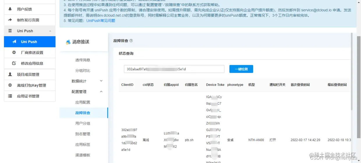 如需获取Token:手机运行app后,在dcloud里测试输入cid来获取Device Token。