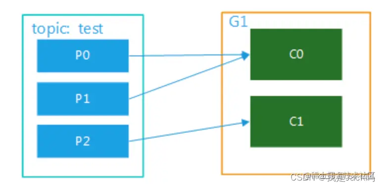 消费者以组的名义订阅topic,topic下有多个partition,消费者组中有多个消费者实例。同一时刻,一条消息只能被组中的一个消费者实例消费。如果按照从属关系来说的话就是,主题下的每个分区只从属于组中的一个消费者,不可能出现组中的两个消费者负责同一个分区。消息就是存储在partition中。