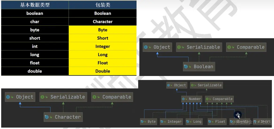 Java知识梳理 第十二章 常用类 ZWF 2022-08-15 36 阅读1分钟 第十二章 常用类 12.1包装类 下图是八种基本数据类型所对应的包装类以及它们的关系 12.2 String类 String的特性及常用方法: 12.3 StringBuffer类 12.4 StringBuilder类 12.5 Math类 12.6 Arrays类 12.7 System类 12.8 BigInteger和BigDecimal类 12.9 日期类 第一代日期类: 第二代日期类: 第三代日期类: