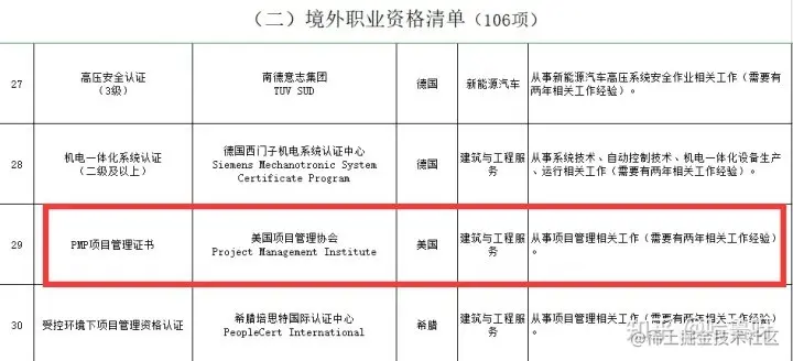 而在目录的第29项就表明了一项证书---PMP项目管理认证。