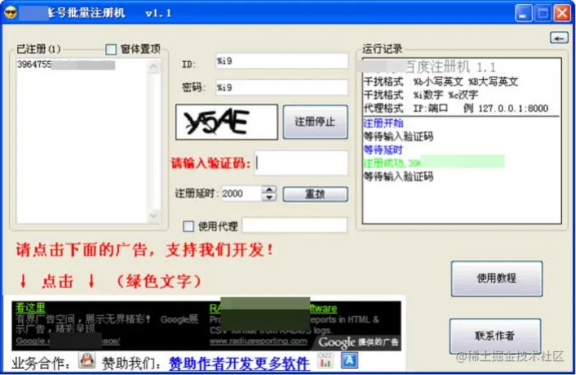 **自动注册机。**账号批量注册软件是大量注册各种网站或者应用账号的软件,能够自动注册大量相关账号,对于批量养号、积分作弊的黑产来说,是不可或缺的工具。