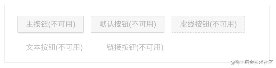 | 不可用状态 | 不可以状态下的按钮不可操作 | 添加disabled属性即可让按钮处于不可用状态,同时按钮样式也会改变。然后为元素设置:disabled 选择器的样式为置灰效果,:disabled 选择器可以匹配每个禁用的元素。 | |